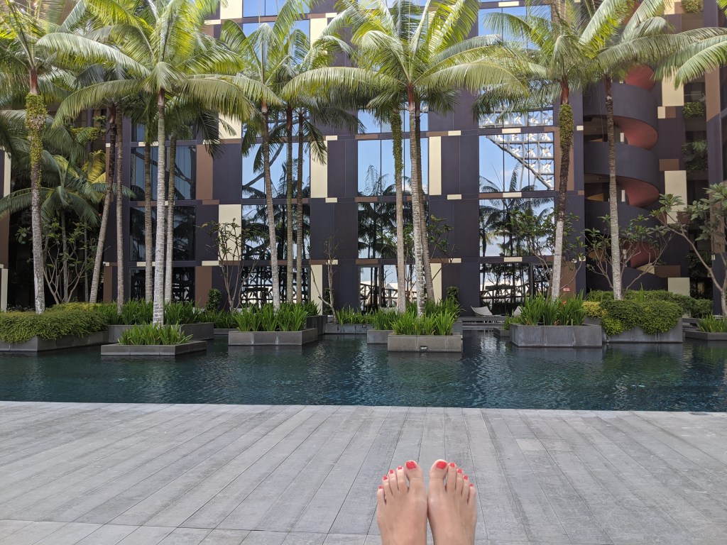 Aaah pedicures! Lovely! I would often have one before I went away on hols đŸ™‚ I don’t really know when or why I started taking photos of my feet! Probably when I’ve been lazing by a pool to send a photo to friends…not sure if they appreciate it đŸ™‚ It’s really not weird to say you want to visit Changi! I love it there, it’s become part of our holidays as we always stop there on the way to/from Australia. The Crowne Plaza is a great hotel, it’s quite pricey but it was worth every penny for that pool and the breakfast!